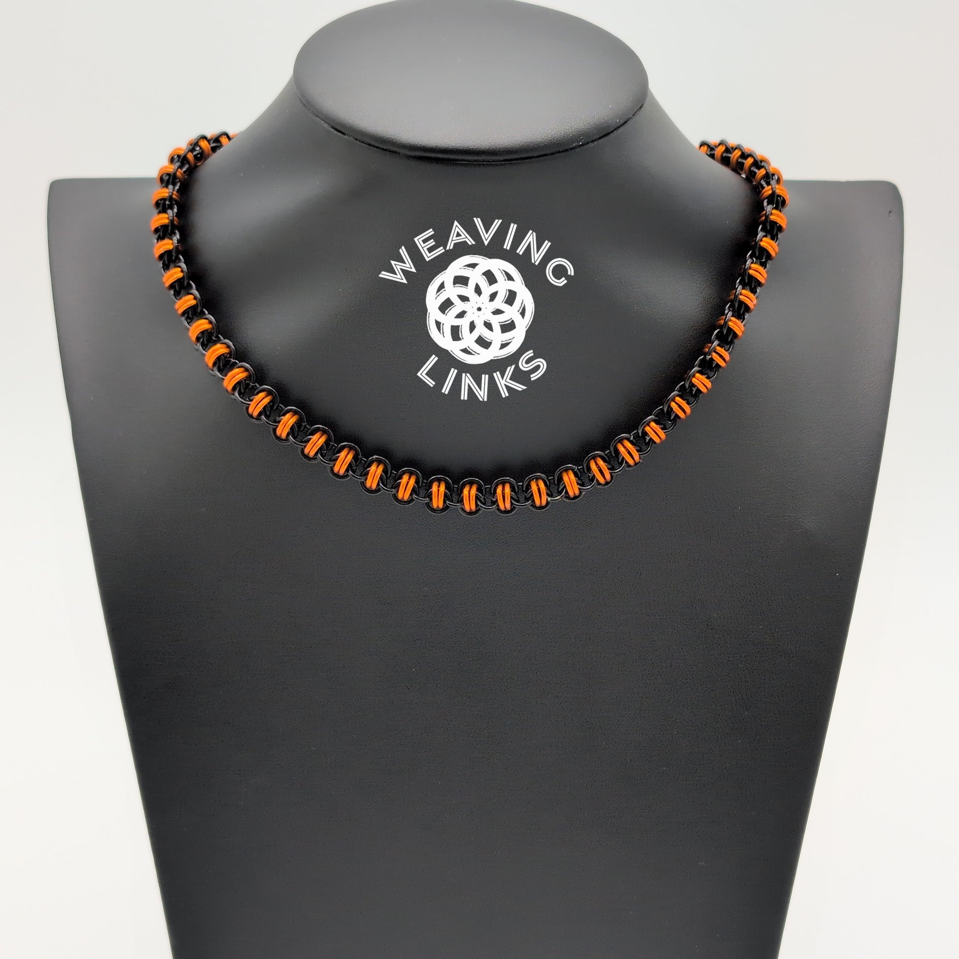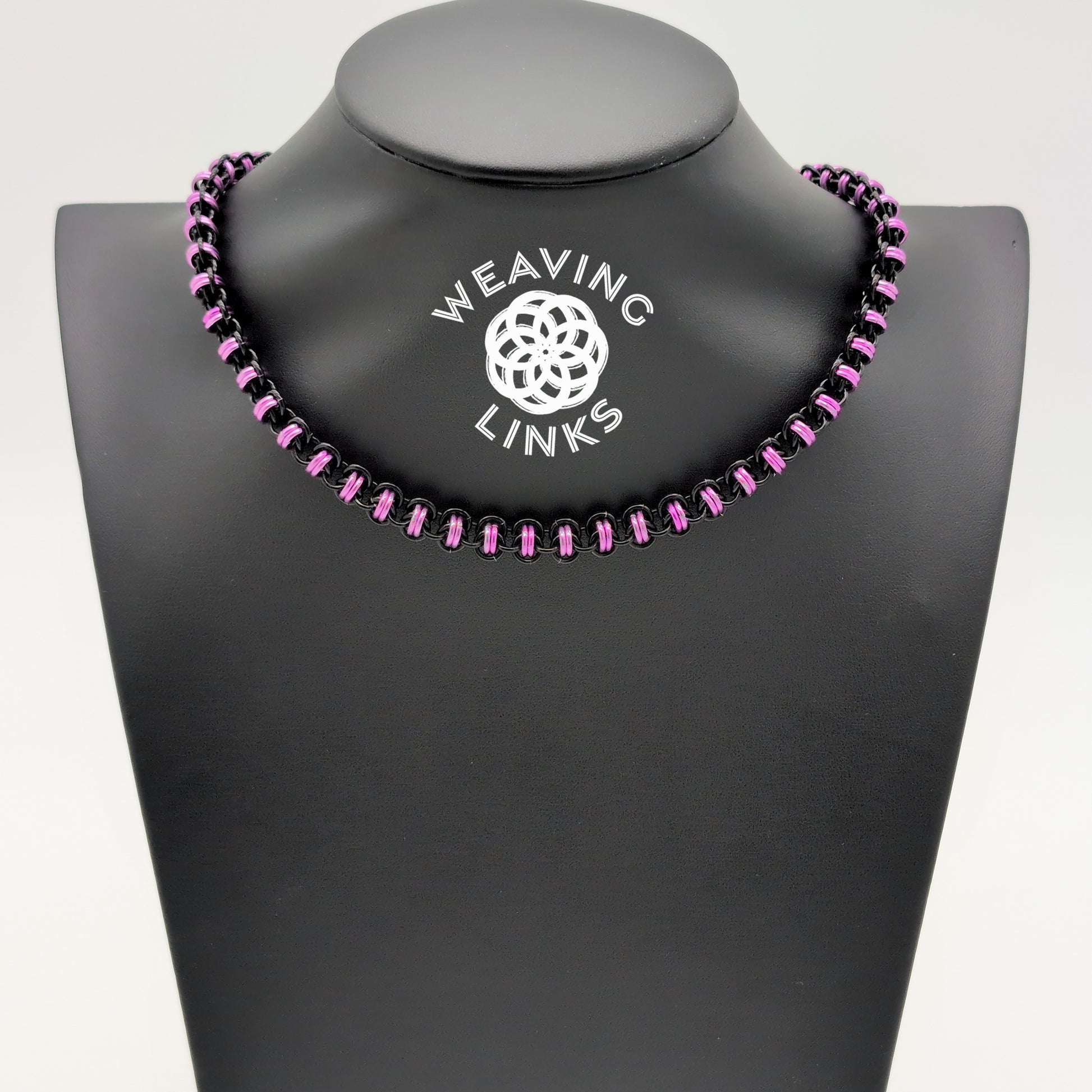 Made with anodized aluminum rings, approx 18 inches long. Lobster clasp closure. Ready to ship.