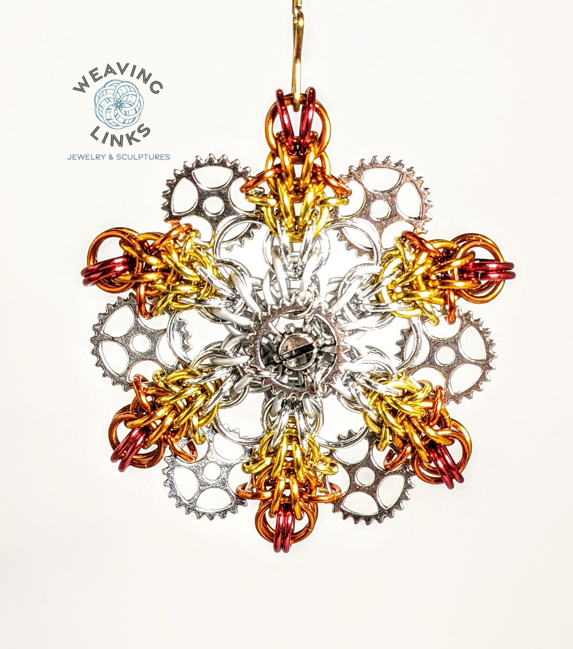 This is a set of instructions for building snowflake ornaments. A wonderful customer asked me to make a snowflake ornament, and, after much fiddling around, this was the result! I like to play with color, so I created an ombre pattern with different shades of blue. Then, I made a steampunk version. There are both versions in these instructions, with multiple color options for each. I illustrate how to lay out the color in two different ways.