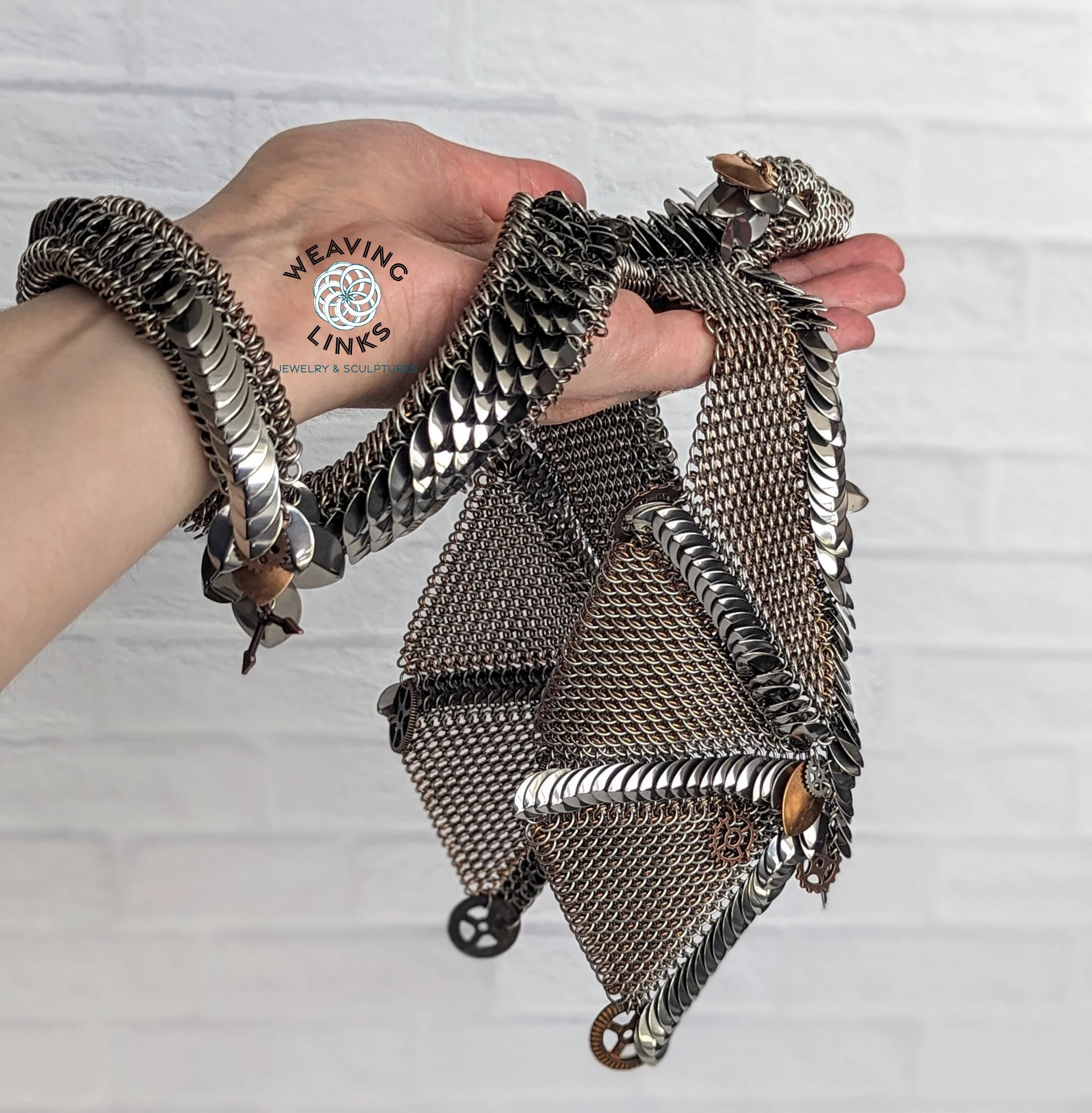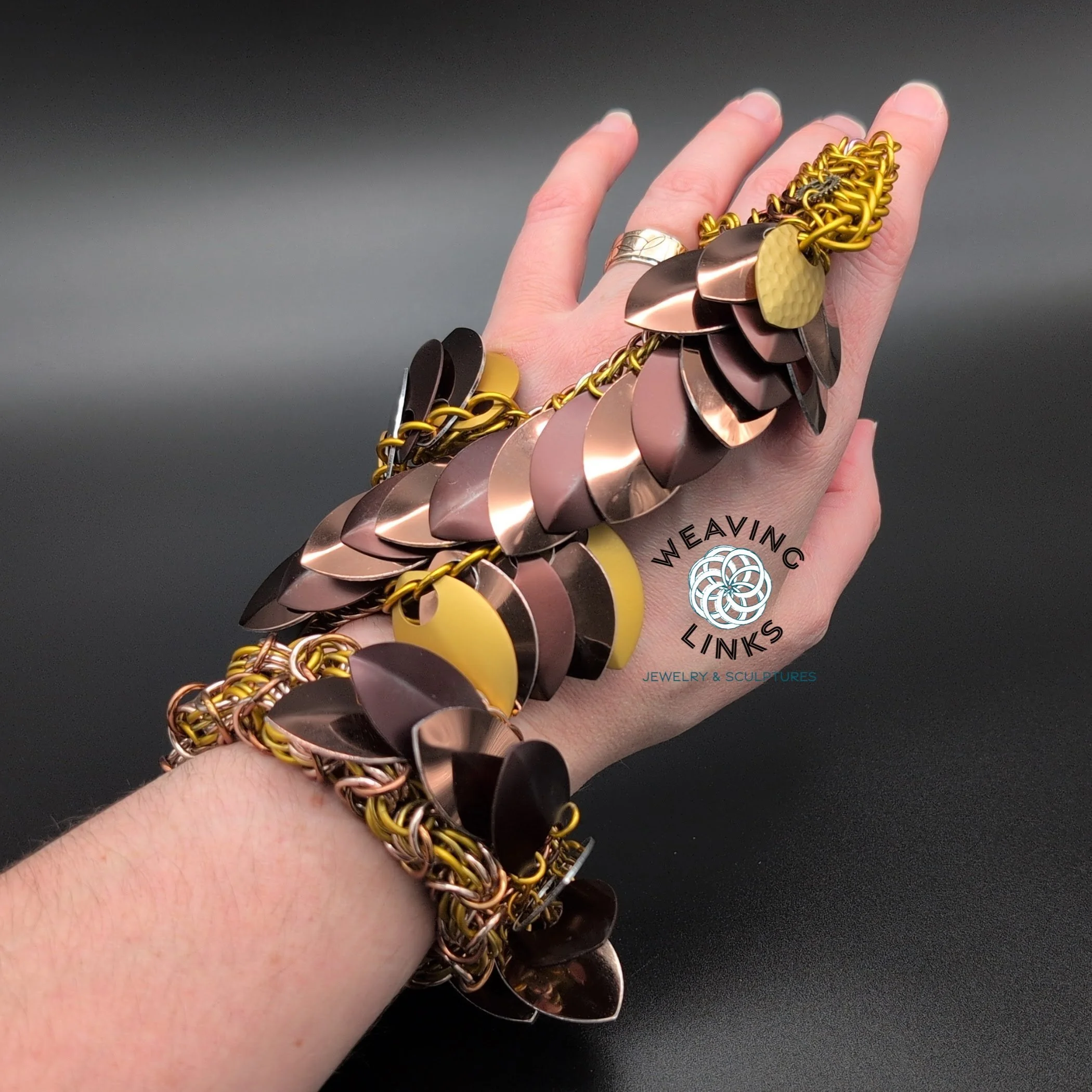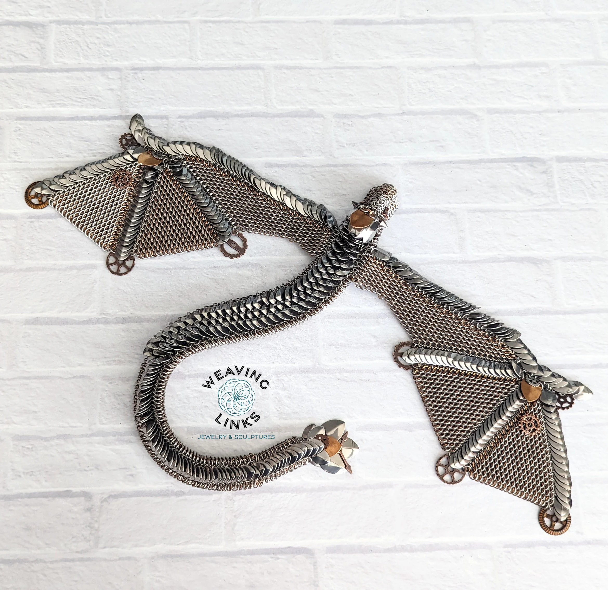 Made from 20g stainless steel and bronze rings, and stainless steel and bronze scales.